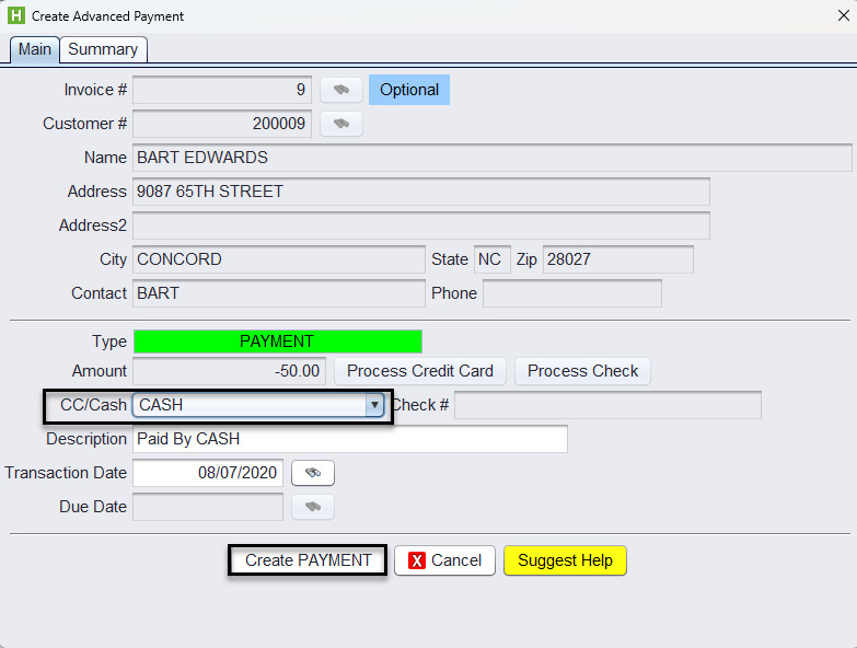 - Finalize the Reverse Payment by selecting the exact same payment method as the advance payment and click Create PAYMENT.