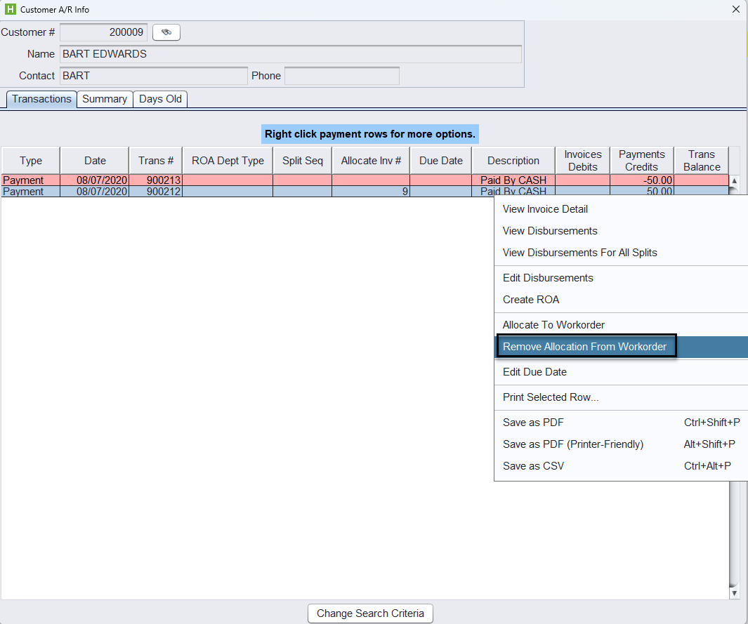 3.) Remove the Allocated Advance Payment From Workorder