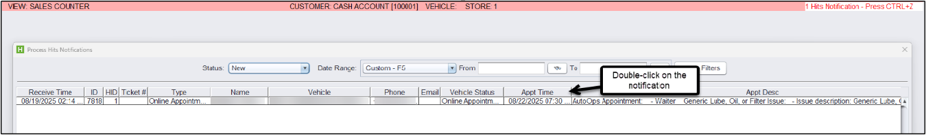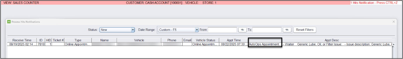 Appoints will appear in the Notifications window and contain the AutoOps Appointment in the appointment description screen.