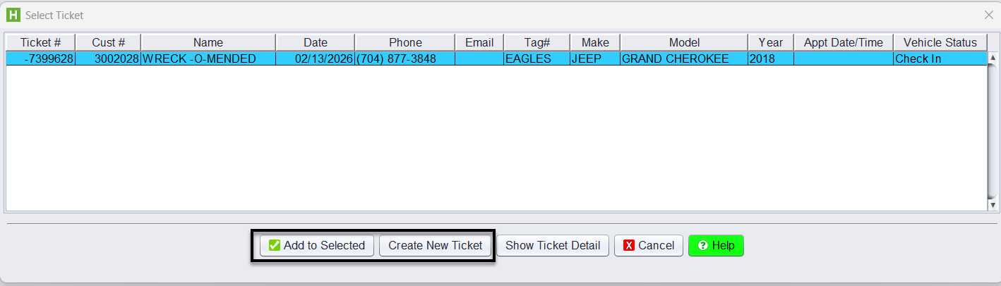 - If the vehicle does not exist, you will be prompted on the ticket to Add Vehicle.
