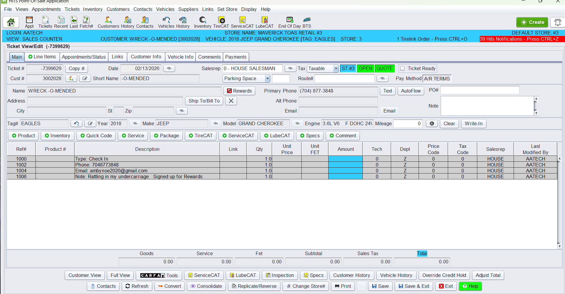- The customer account and vehicle information are automatically applied.
