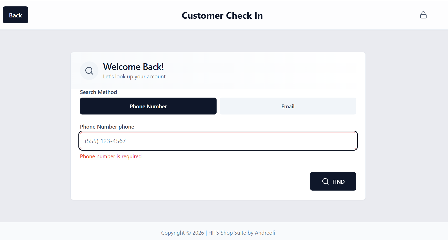 - Customer searches by phone number or email