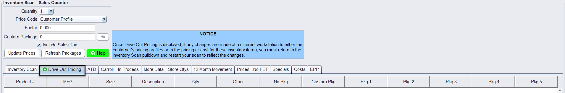 The Drive Out Pricing tab streamlines tire sales by allowing