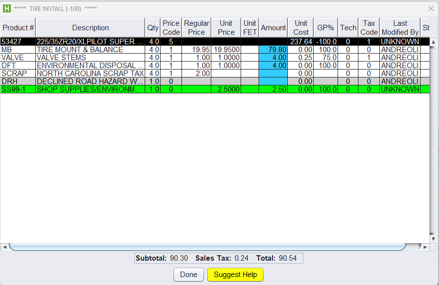 The Drive-Out Pricing tab within the Inventory Lookup helps speed up and simplify tire sales by offering consistent, package-based pricing, allowing staff to quickly quote, adjust, and sell tires, all from one screen.