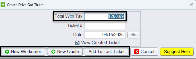 3.) Click New Workorder, New Quote, or Add to Last Ticket.