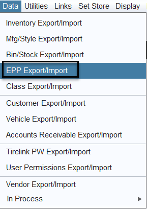 - Return to Data > EPP Export/Import.