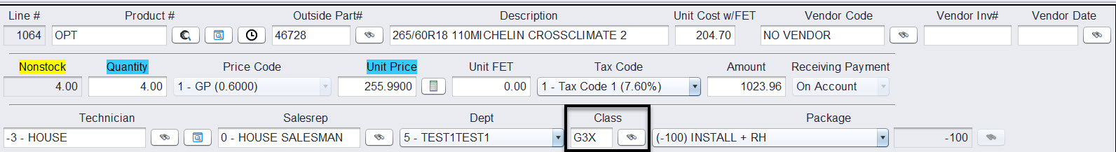 - Enter G3X in the Class field for the qualifying item