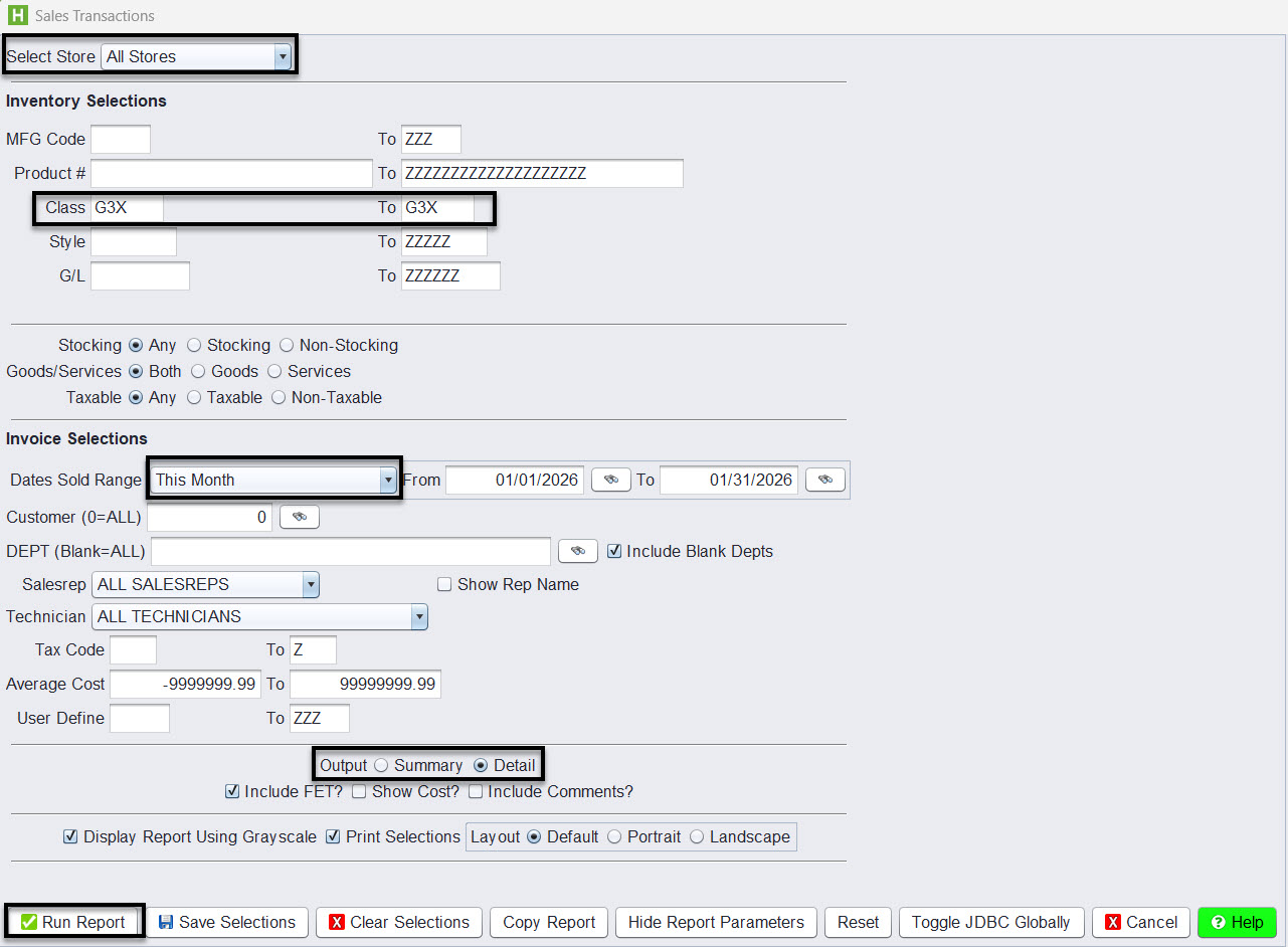 Running a G3X Sales Report
