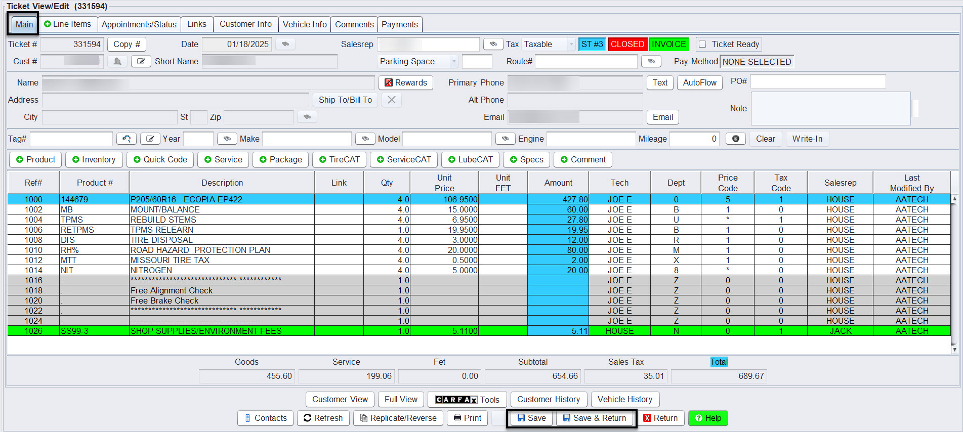 - Add the Outside Purchase Tire to the ticket as usual