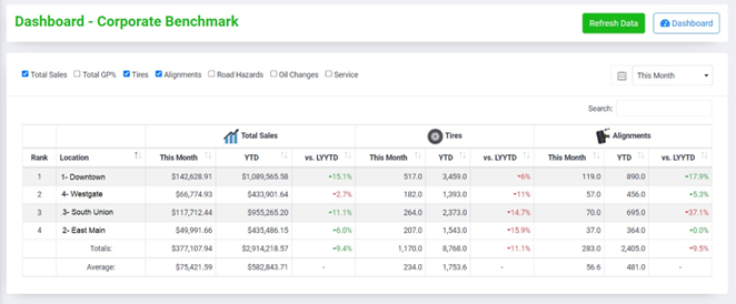 - For Multi-Store Locations, A Corporate-Level KPI Dashboard:
