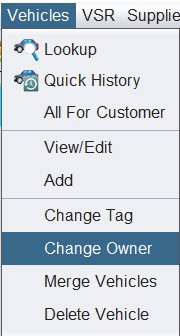 This will change the owner of of this vehicle. History for this vehicle will be available under Vehicle History, but Invoices for the previous owner will stay assigned to the previous owner.