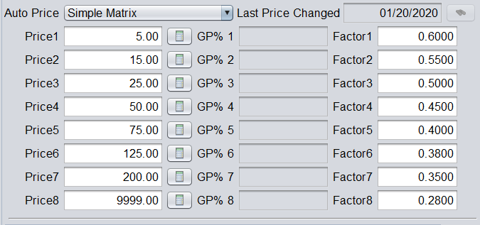 4. To activate a matrix, make sure Auto Price is set to either Simple Matrix or Progressive Matrix.