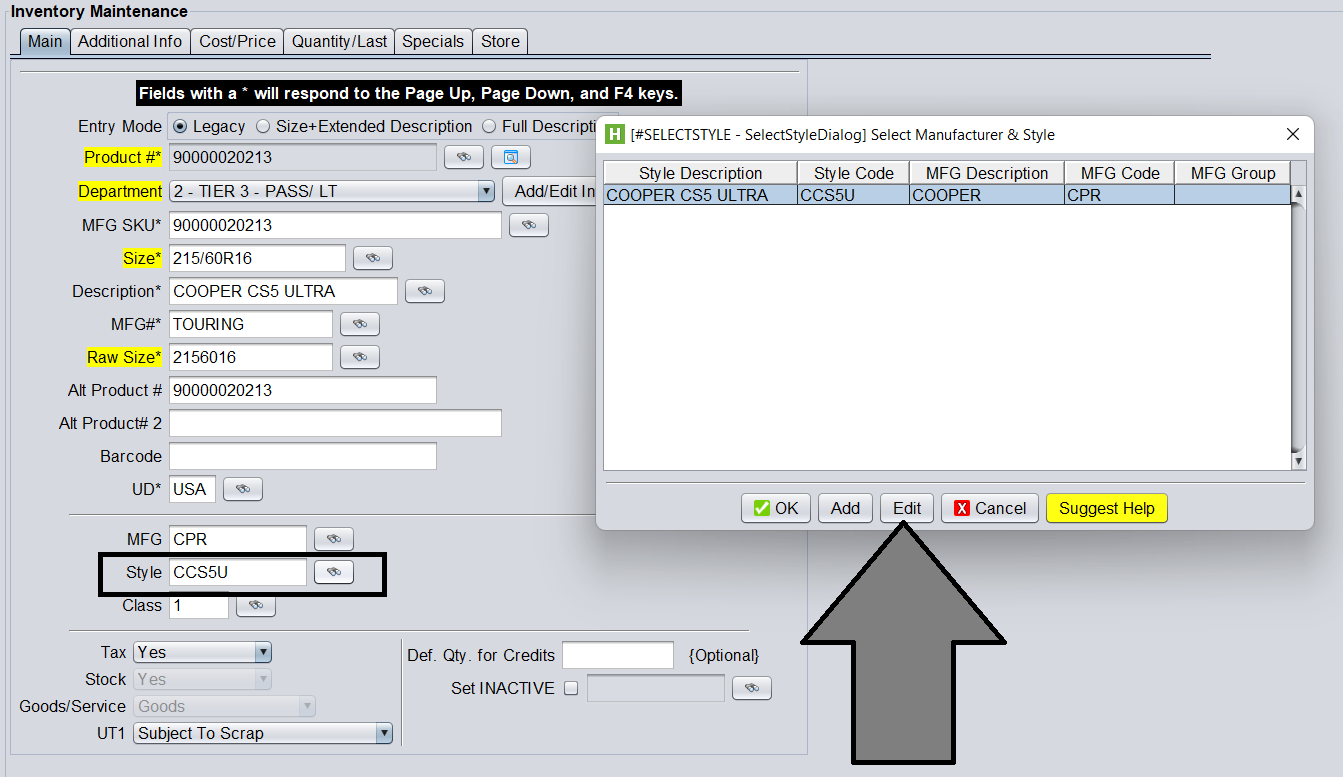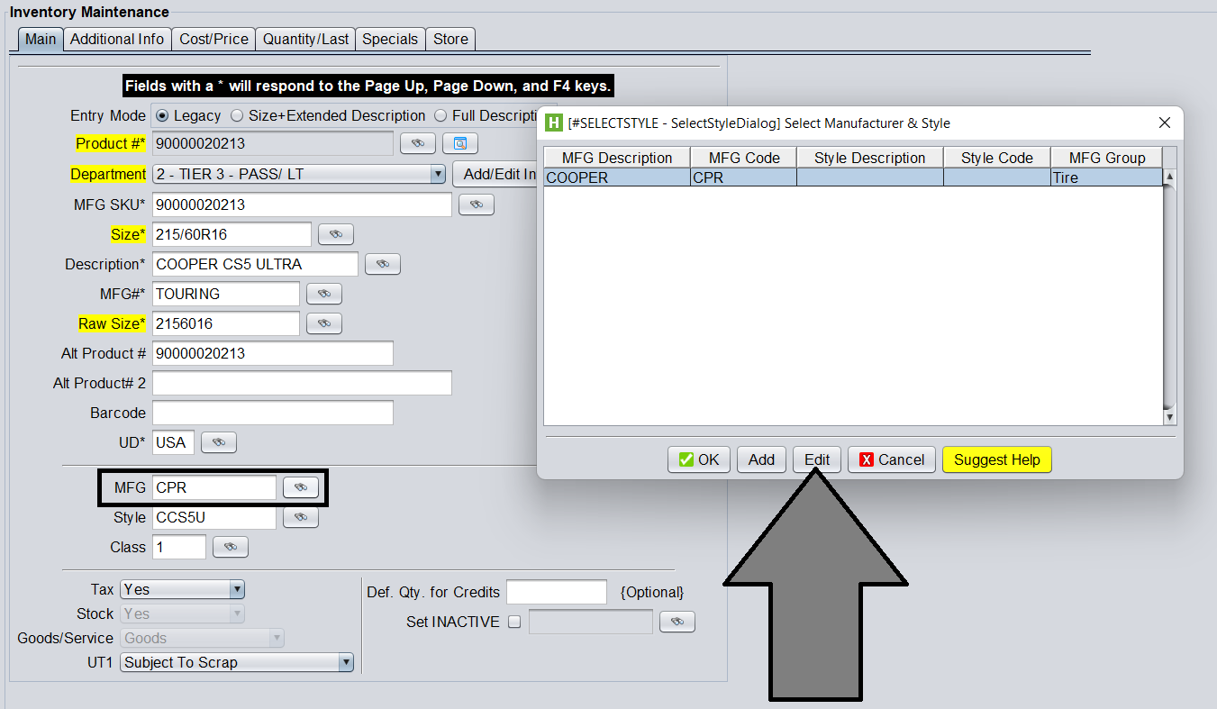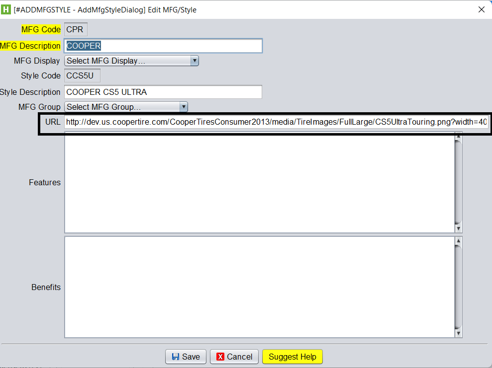 For adding a manufacturer logo, use the same process as above, however select the Lookup from the Manufacturer field and then click Edit. (The record you edit should only contain the MFG Code and Description, Style Code and Description should be blank.)