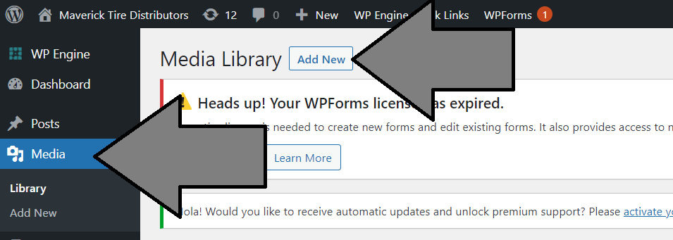 3. Once logged in as an Admin, select Media and then Add New.