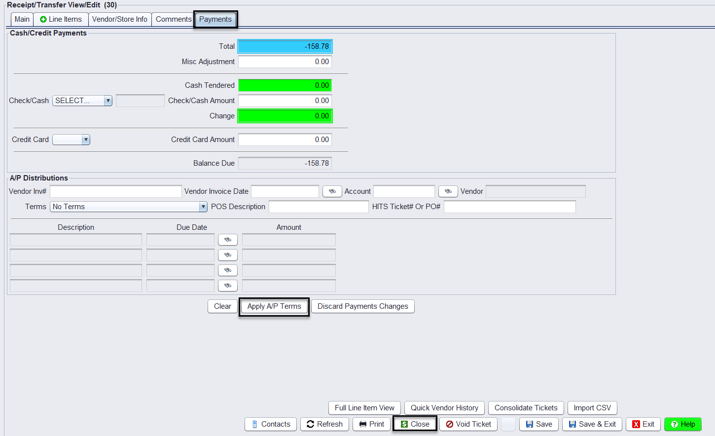 9.) When you are ready to finalize the adjustment ticket, click on the Payments tab