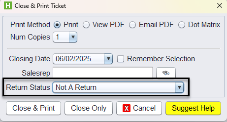 13.) Then click on either Close & Print or Close Only (for not printed copy)