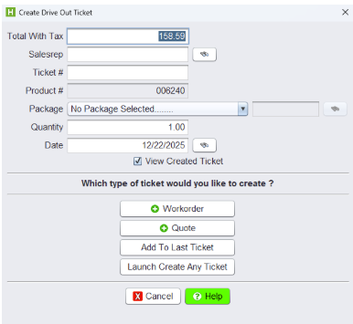 Create Ticket from Inventory Lookup