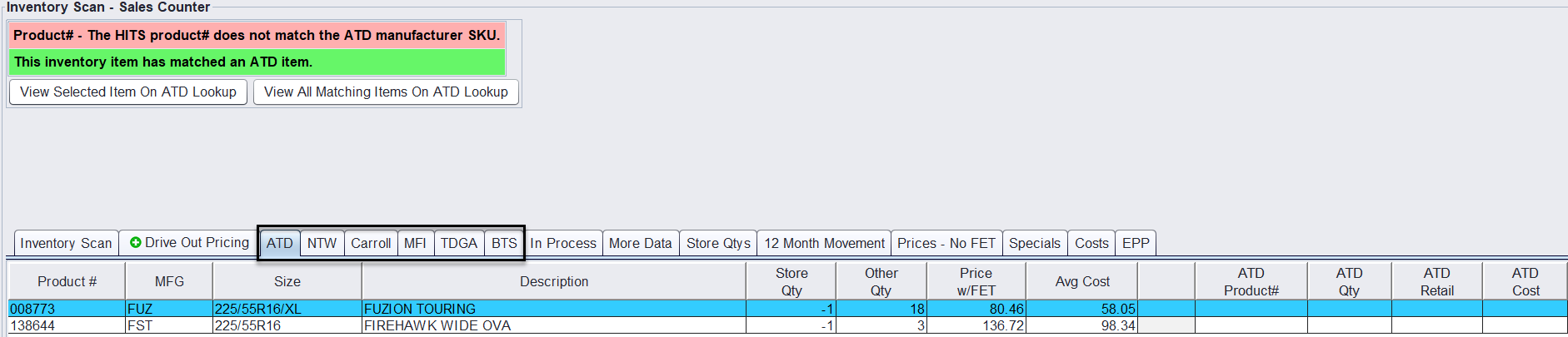 - Inventory Lookup – Sales Counter View (used while creating customer sales tickets)
