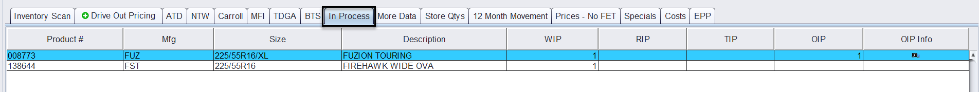 Tire Integration Inventory Tabs