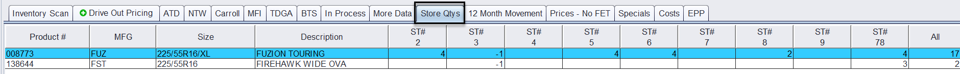 Store Qty’s