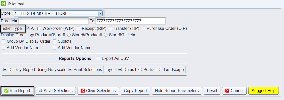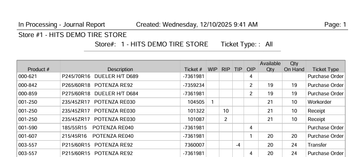 The IP Journal (In Process Journal) report lists all open tickets that are affecting available inventory quantities.