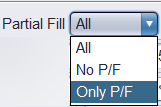 - Partial Fill dropdown: Choose “Only P/F” to view tickets currently flagged as Partial Fill