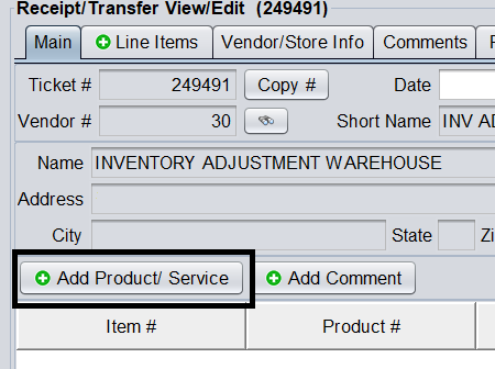 2. From the Adjustment ticket, click Add Product/ Service
