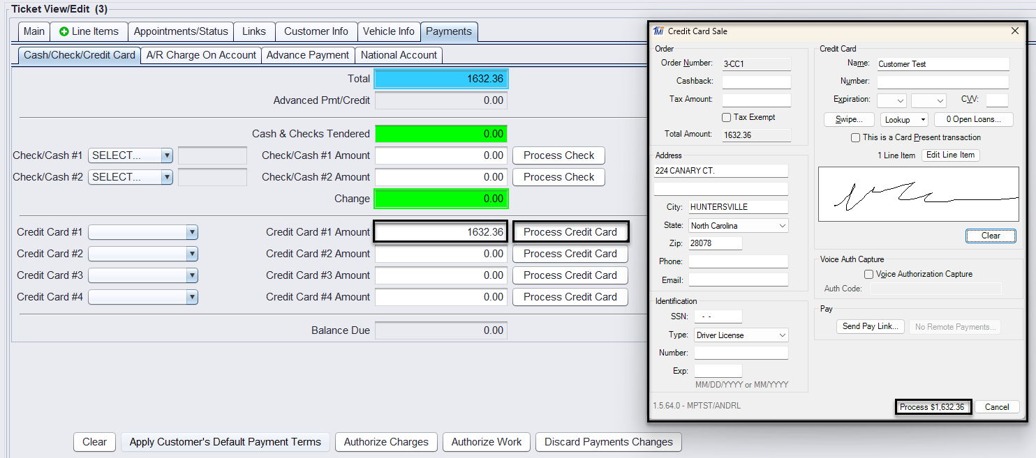 If you have any issues processing a payment, you may click Clear to reset the fields and start again, but only before the transaction has been finalized. This option is unavailable once an integrated credit card payment has been processed, or the ticket has been saved or closed.