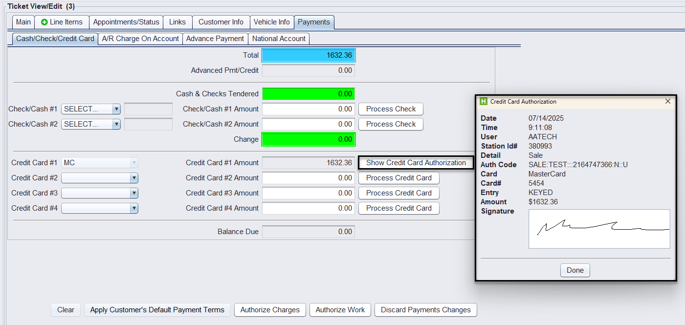 9.) Click Show Credit Card Authorization to confirm the transaction. Note: the card type (MC/VI/etc.) is populated based on the card swiped.