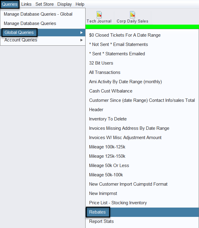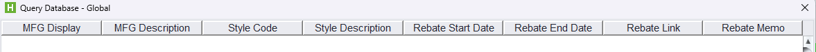 There is also a Global Query called Rebates that will provide a list of the existing rebates as well. *This report should not be used in the MFG/Style Export/Import utility.