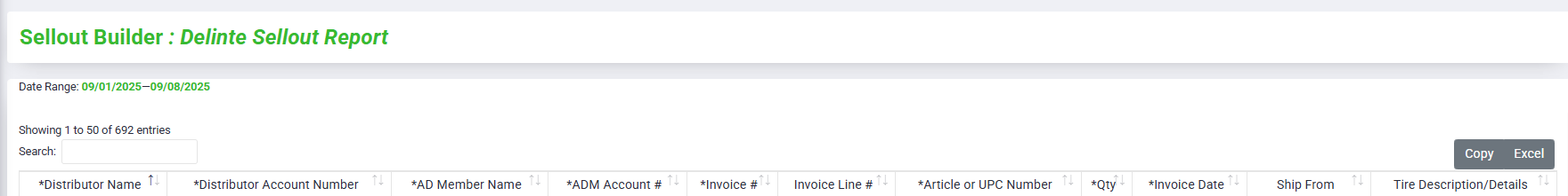 Sellout reports are created using customer and store mapping information and are tailored to each manufacturer’s requirements. These reports typically include details such as dealer IDs, distributors, invoice numbers and dates, product codes, quantities, and selling prices.