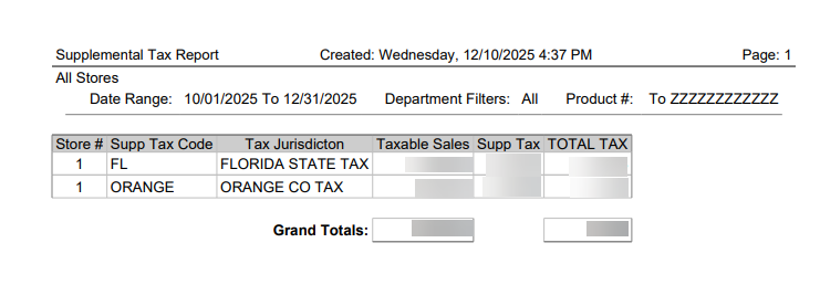 If supplemental taxes are not used at your store, this report will return blank or minimal data.