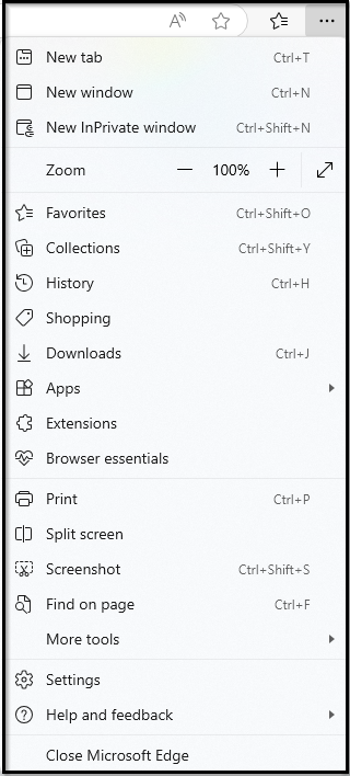 1.) Click on the three-dot menu (ellipsis) located at the top-right corner of the browser window.