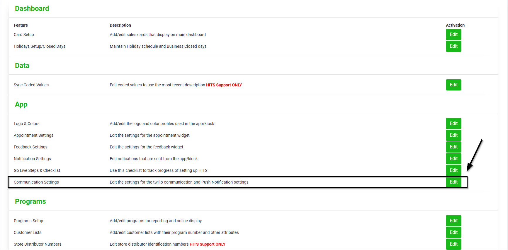 2.) Locate and Click on the Communications Settings Button