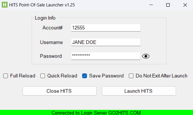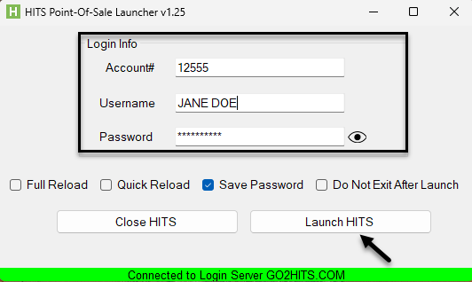 (The HITS Point-of-Sale launcher icon is installed on your local workstation).