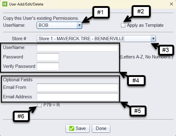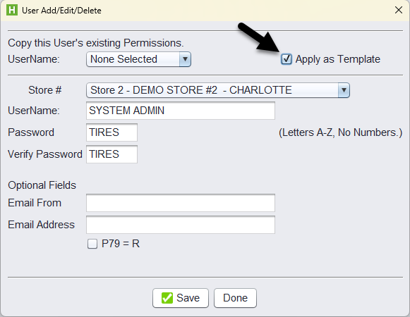 Users can be specific to an individual person or generic (recommended). Individual usernames are ideal for tracking the actions and responsibilities of each employee. Many businesses will use a generic login (e.g., SHOP) for their front desk or bay workstations, and then provide a separate username for their store manager and/ or owner. Other businesses create a unique username for every employee who will be accessing the system.