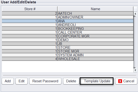 3.) Enter a Username (e.g., STORE MGR TEMPLATE, ACCOUNTANT TEMPLATE) and Password.