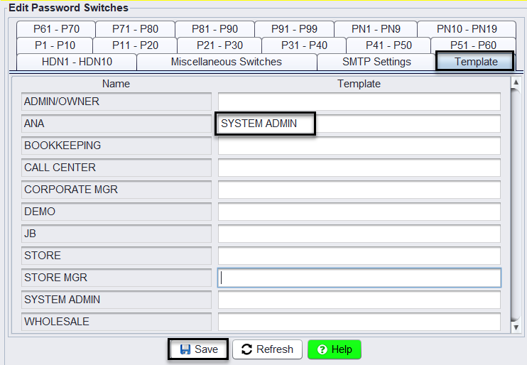 You can now assign this user as a template using the Permission Switches > Template screen.