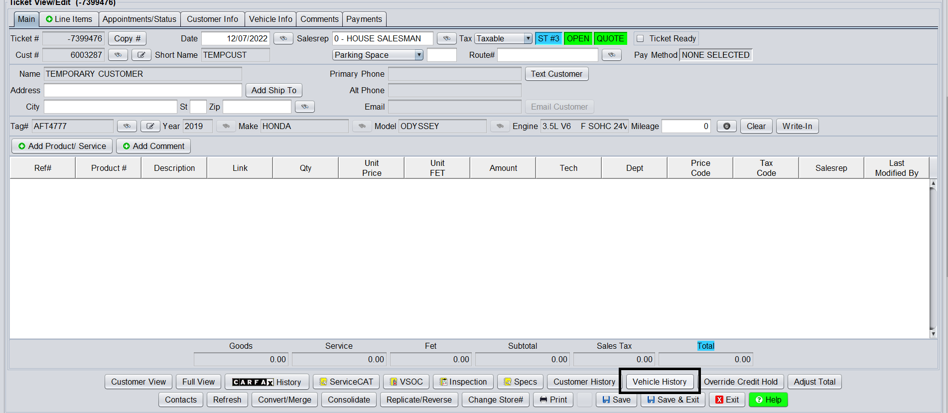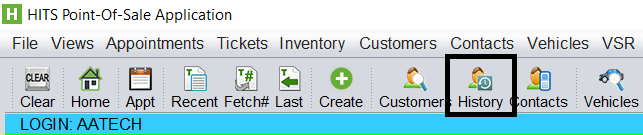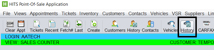History can also be viewed in the system via the Customer History option. This will include history for ALL of the customer’s vehicles.